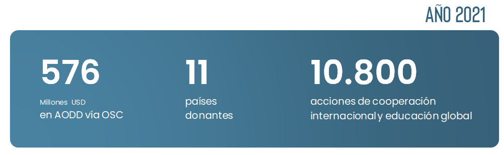 En la sección 2, como en el informe anterior, se presentan los resultados del análisis cuantitativo de la AODD con los últimos datos publicados por la OCDE en 2023, relativos a 2021. En esta ocasión, el análisis cuantitativo contiene un segundo nivel de análisis referido solo a la AODD canalizada a través de OSC.
