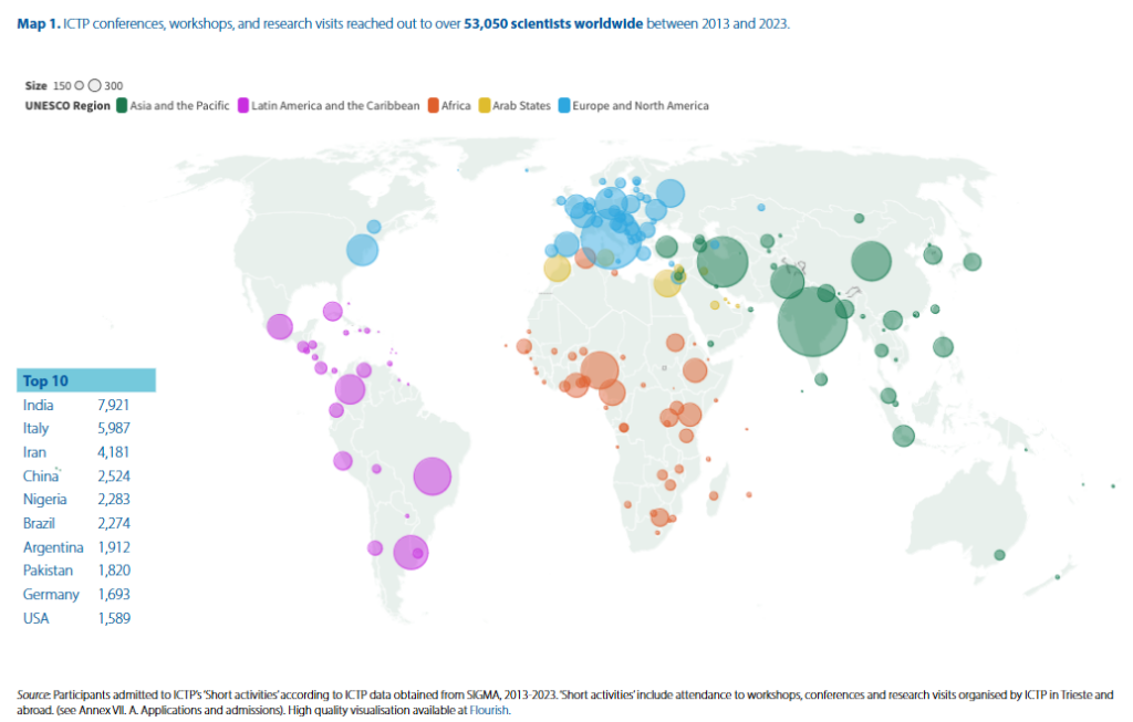 Bajo el paraguas del Sector de Ciencias Naturales de la UNESCO, el ICTP es un Centro de Categoría 1 de la UNESCO gobernado por un acuerdo tripartito entre el gobierno de Italia, la Agencia Internacional de Energía Atómica (AIEA) y la UNESCO. La misión del ICTP se basa en tres pilares fundamentales igualmente importantes: